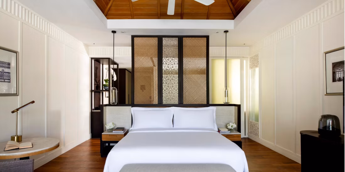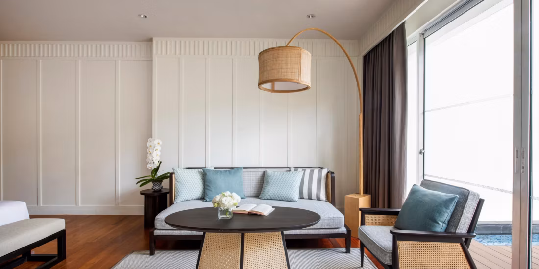 Each accommodation includes a private balcony, with select suites boasting their own private pool. Interiors seamlessly combine traditional Thai elements with modern luxury, creating a serene sanctuary for every guest.