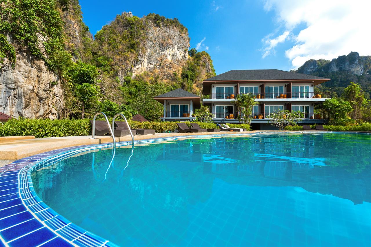 The resort features a beautiful swimming pool overlooking the limestone cliffs and sea, creating the perfect place to unwind after a day of exploring Railay’s beaches and caves. Whether you’re seeking adventure or tranquility, Railay Phutawan Resort promises a memorable stay surrounded by nature.