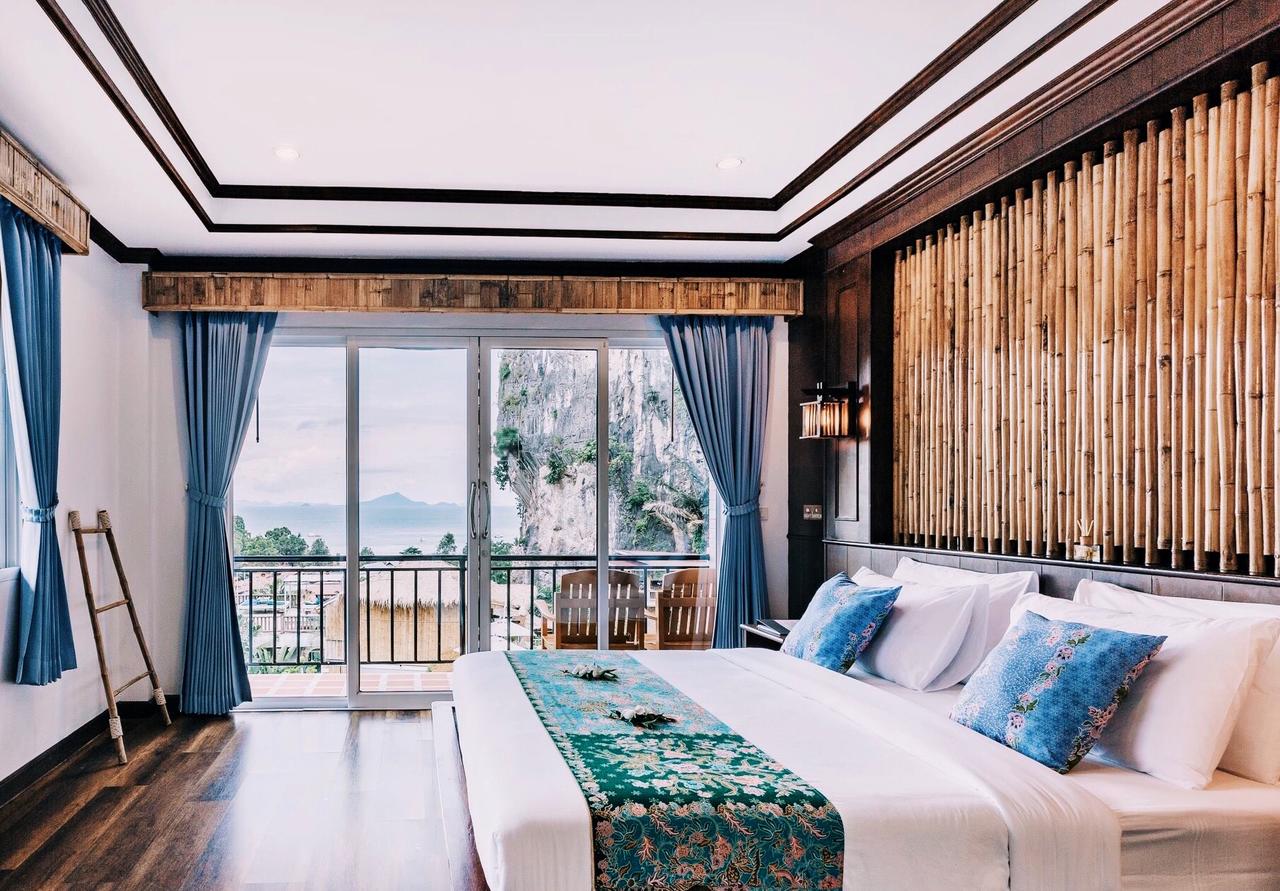 Each room at Railay Phutawan Resort reflects traditional Thai style with warm wooden furnishings and rustic accents. Guests can enjoy modern comforts including air conditioning, a minibar, complimentary toiletries, and a private balcony that opens to tropical views.